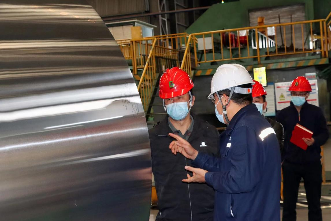 調(diào)研組一行深入貴州中鋁冷軋制造部的生產(chǎn)一線了解企業(yè)主要產(chǎn)品、技術(shù)工藝等情況。隨后,黃獻(xiàn)喜一行與貴州中鋁企業(yè)領(lǐng)導(dǎo)班子成員進(jìn)行交談,聽取了貴州中鋁對生產(chǎn)經(jīng)營情況、外貿(mào)進(jìn)出口情況、物流情況等相關(guān)匯報,調(diào)研組一行對貴州中鋁的生產(chǎn)經(jīng)營模式及取得的成績給予了肯定。同時對公司在經(jīng)營過程中存在的問題及困難有了初步了解。