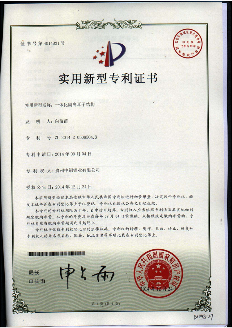 實(shí)用新型專利證書