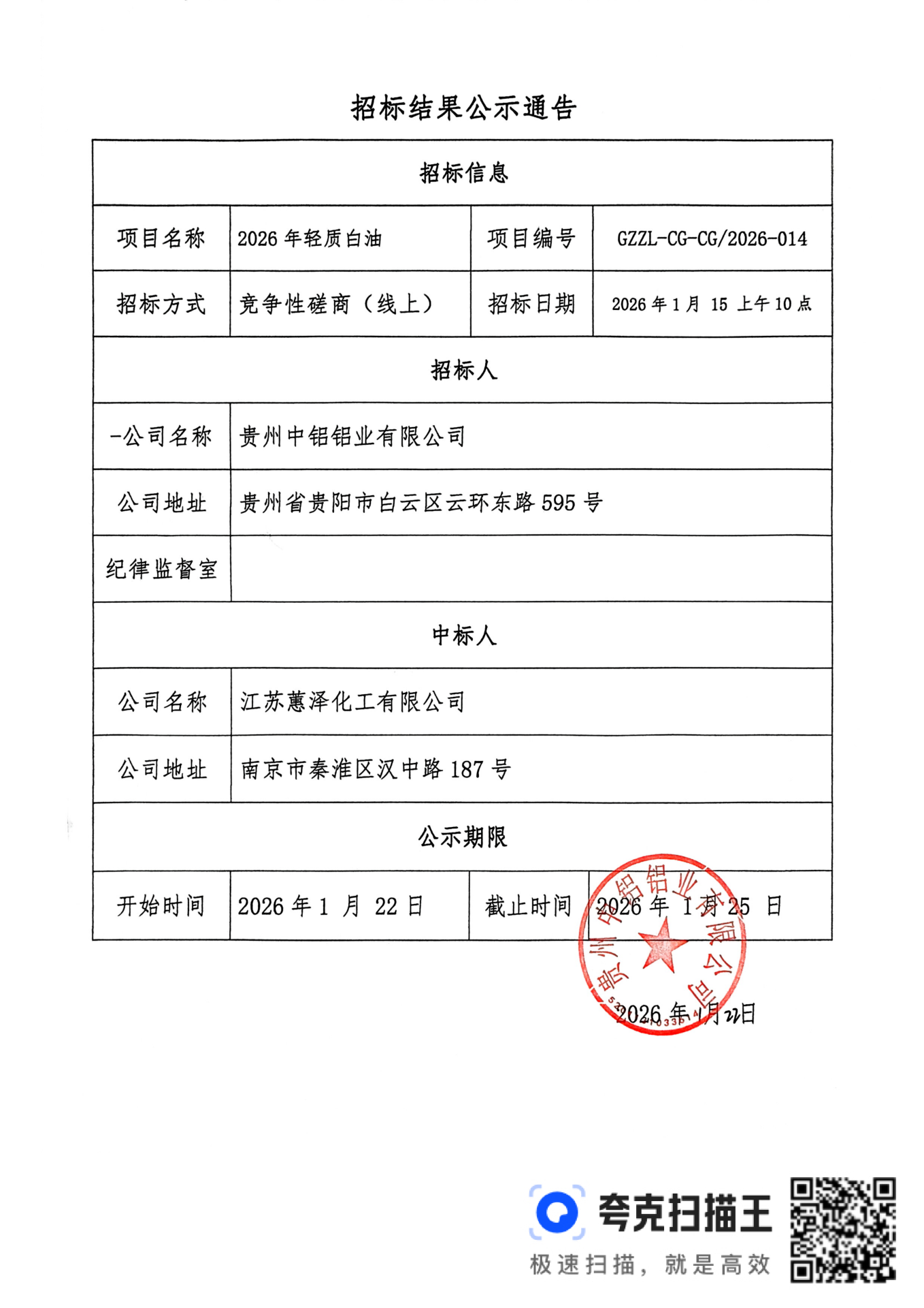 輕質(zhì)白油招標(biāo)結(jié)果公示通告